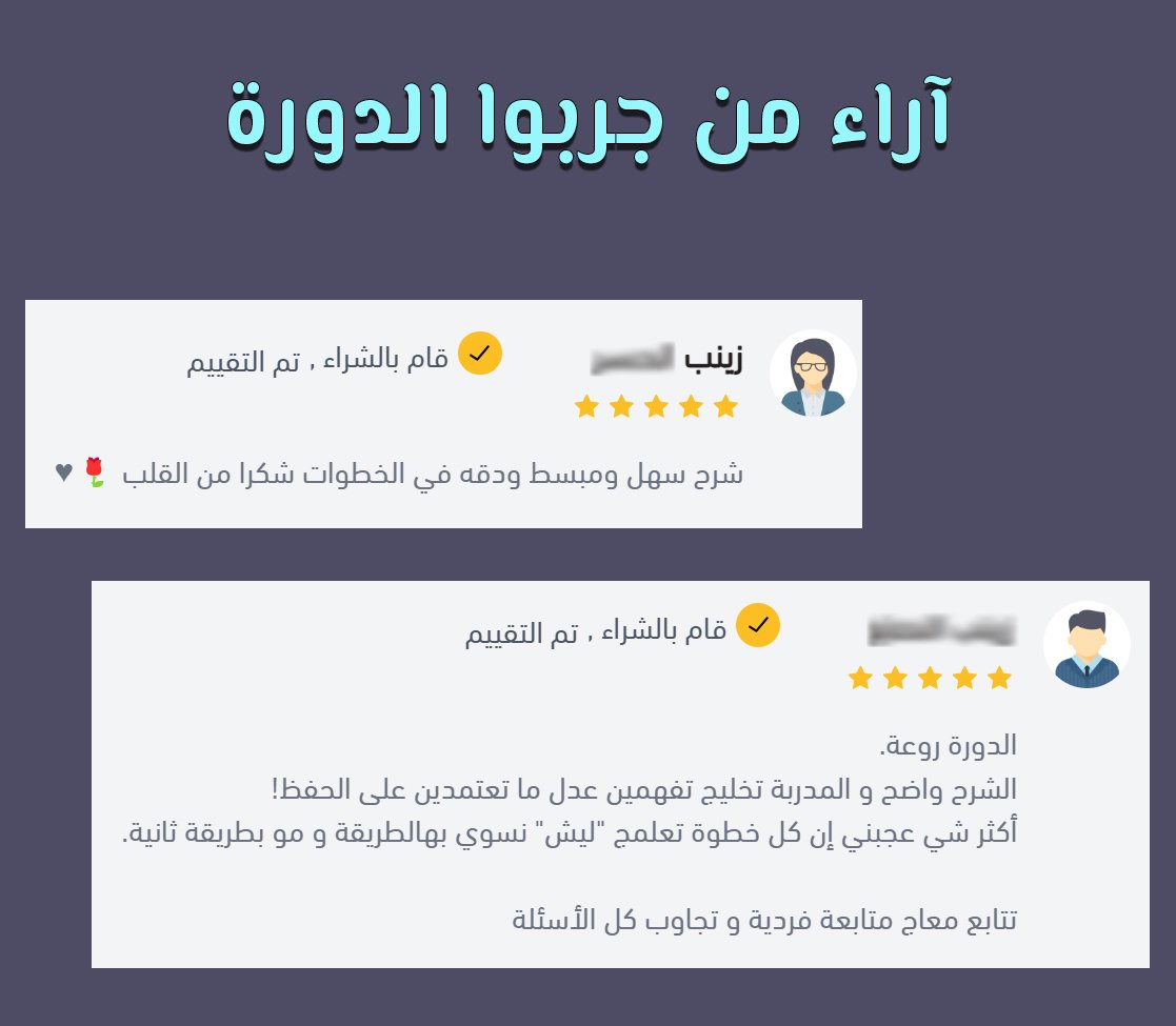 - تقييمات ممتازة: التقييمات العالية تعكس رضا المتدربات عن جودة الدورة.
